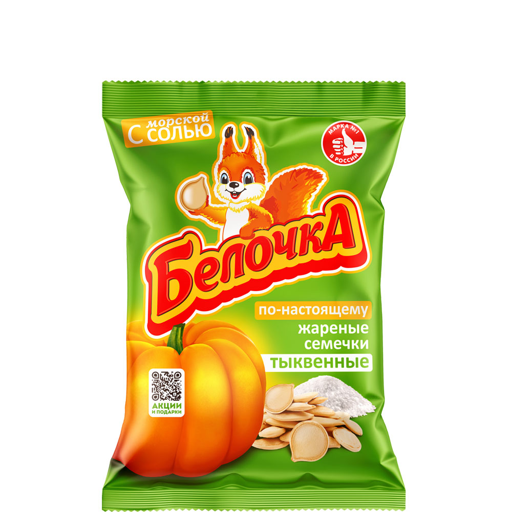 - Семена тыквы жареные ТМ «БЕЛОЧКА» с фасовкой: 50 г., 100 г.