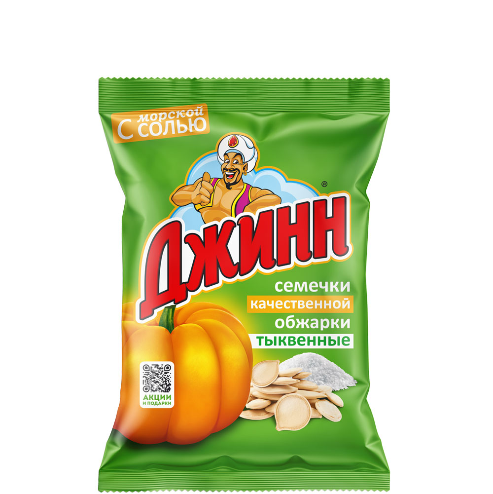 - Семена тыквы жареные ТМ «ДЖИНН» с фасовкой: 50 г., 100 г.